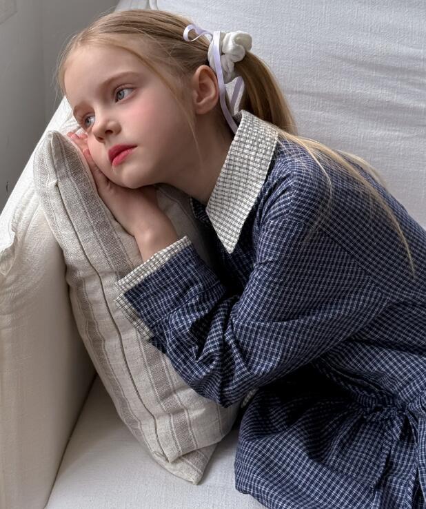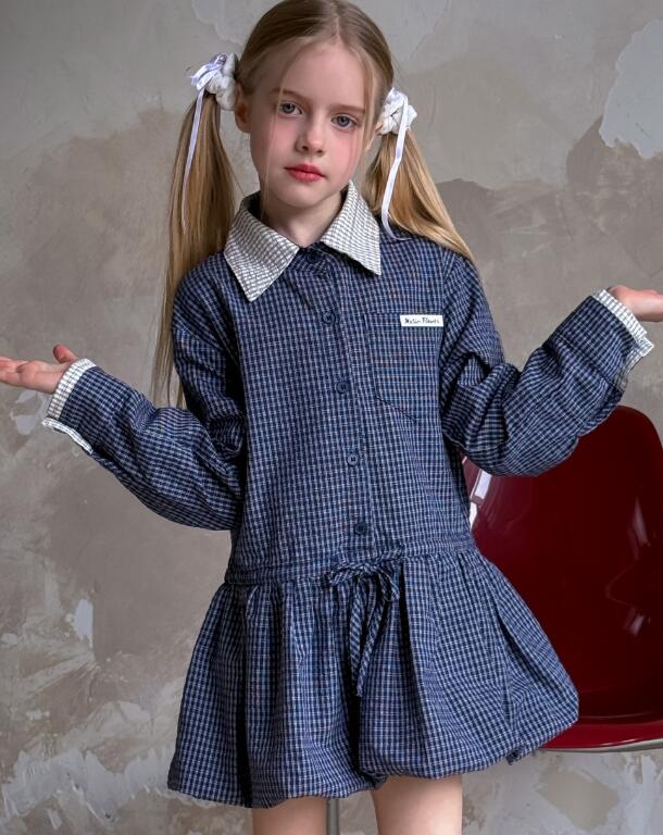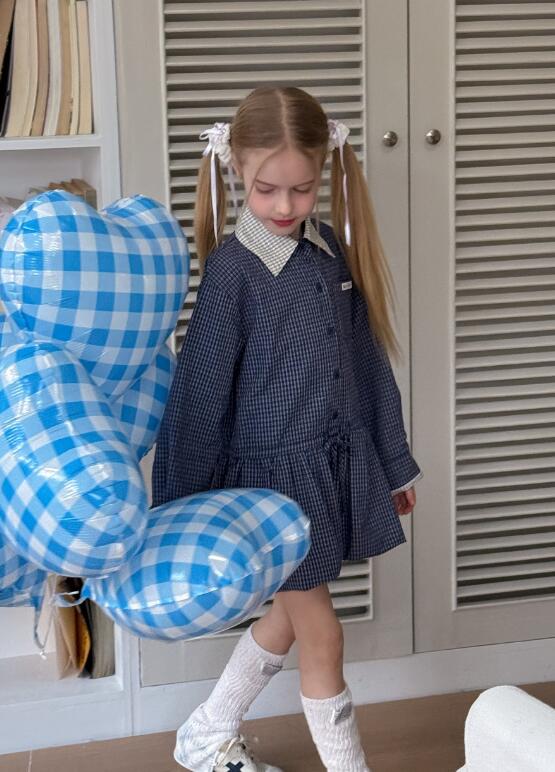 上品なチェック柄が魅力的なキッズ用ロングワンピースです。