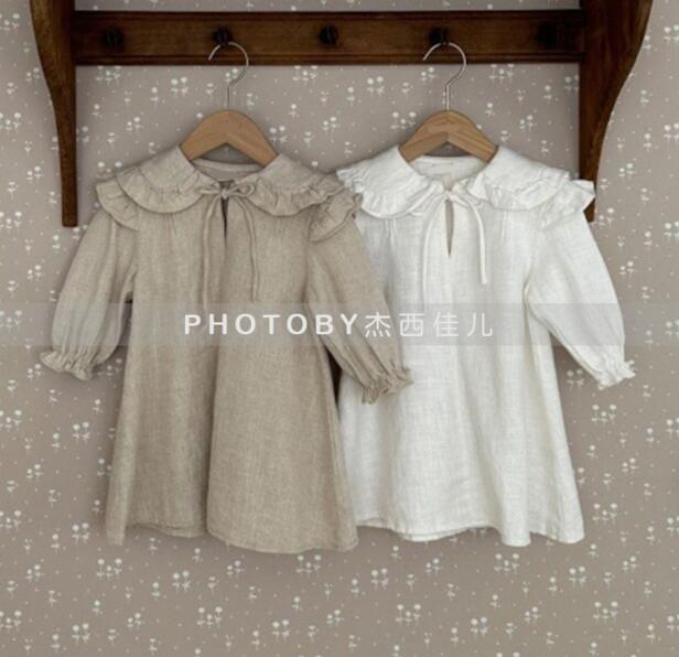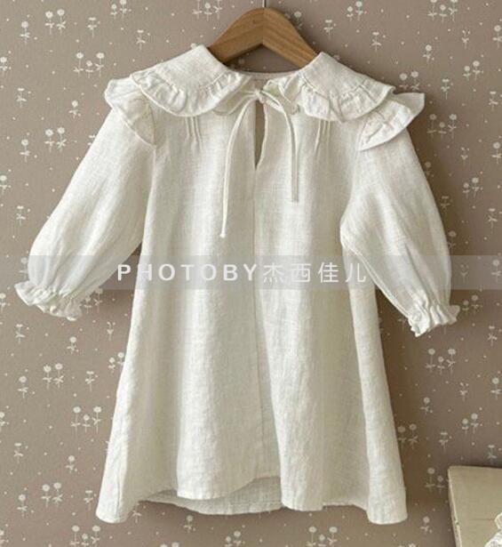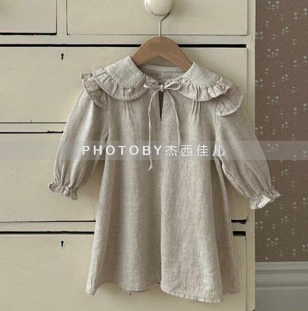 可愛らしいフリル襟が特徴的なキッズ用ロングワンピースです。