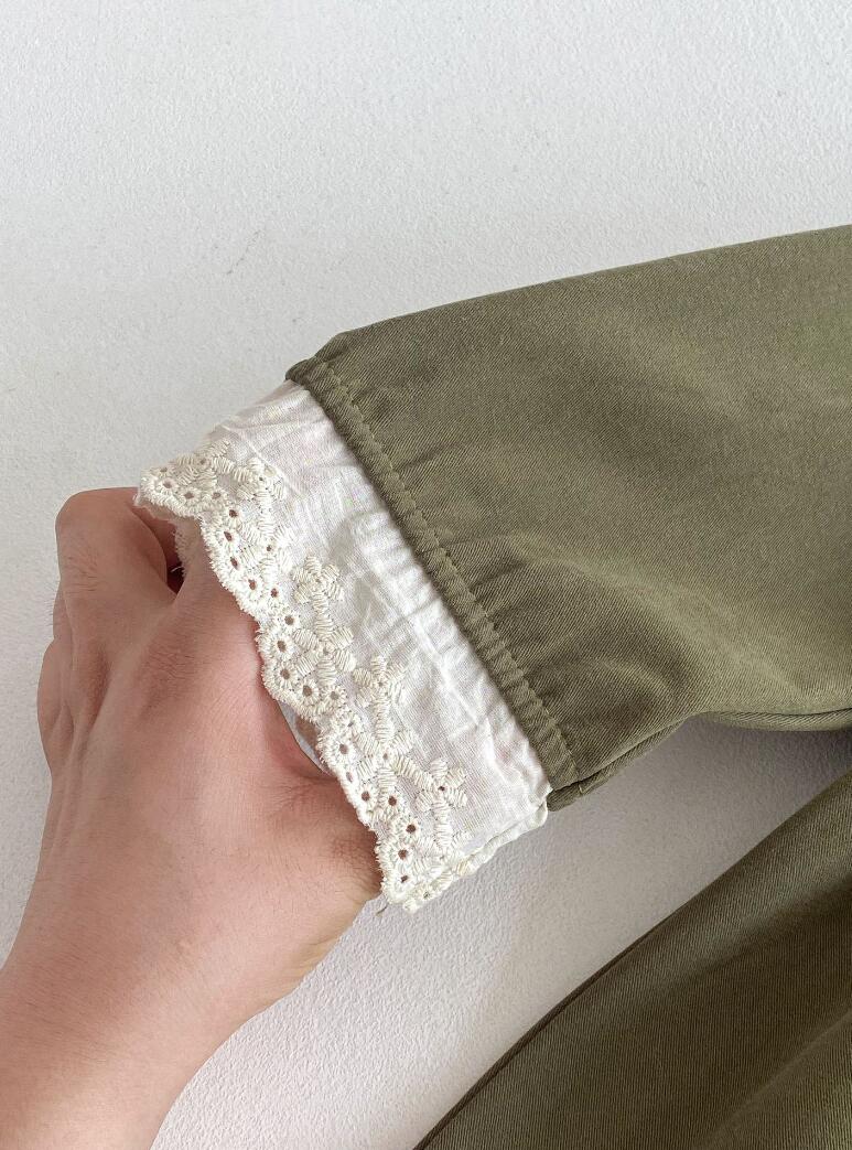 落ち着いたカーキ色で上品な仕上がりになっています。