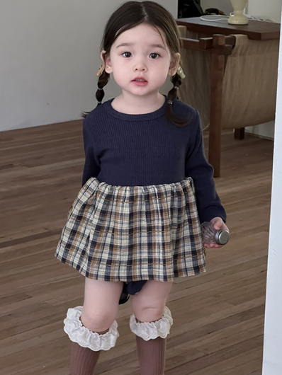 上品な格子柄が可愛らしいキッズ用ロングワンピースです。