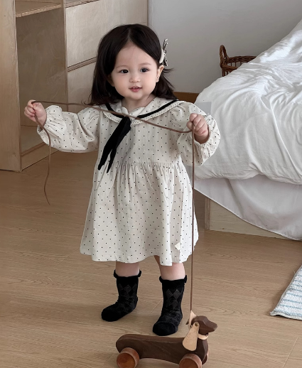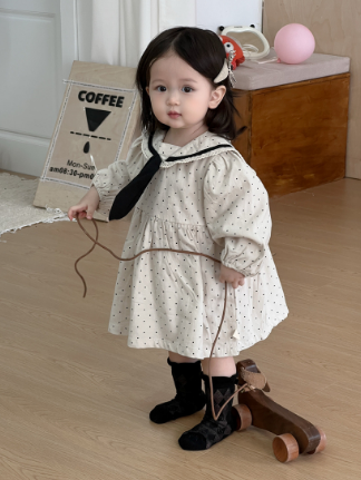 可愛らしい小花柄とセーラー襟が特徴的なキッズ用ロングワンピースです。