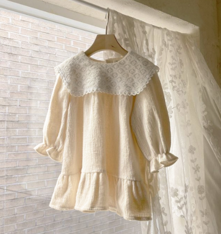 上品な丸襟が特徴的なキッズ用ロングワンピースです。