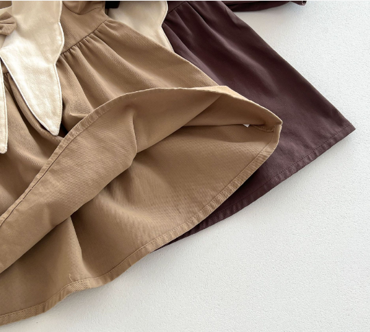 ベージュとブラウンの落ち着いた色合いで、お出かけや普段着にも最適。