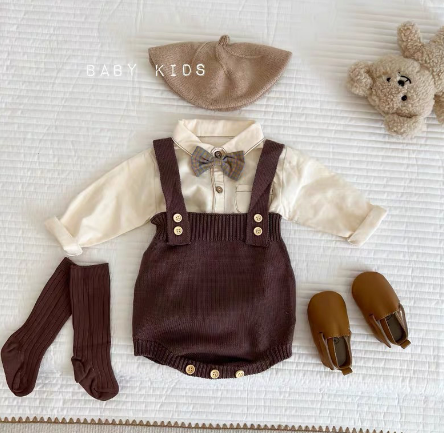 2025年新作のキッズ向けニット編みサロペットです。