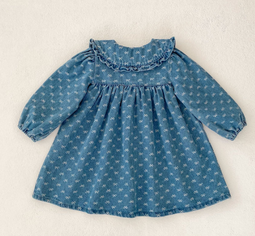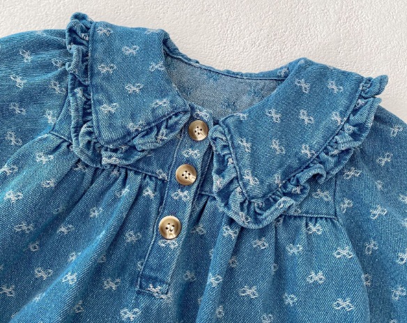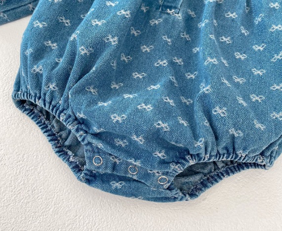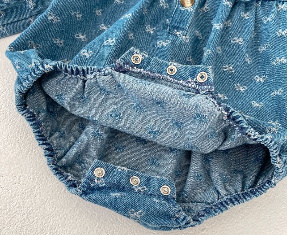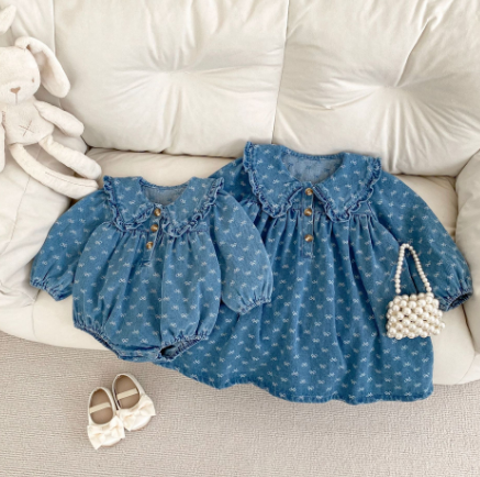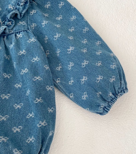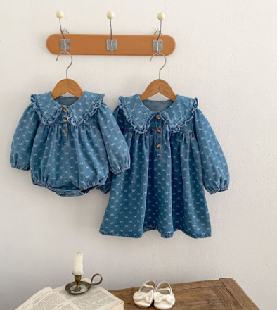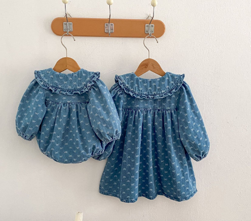 上品な青色に可愛い小花柄をあしらったキッズベビー服のセットです。