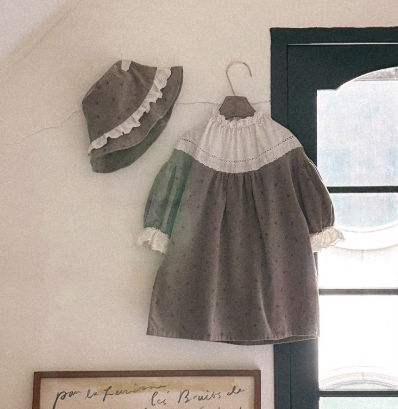 可愛いキッズ用ロングワンピースと帽子の2点セットです。