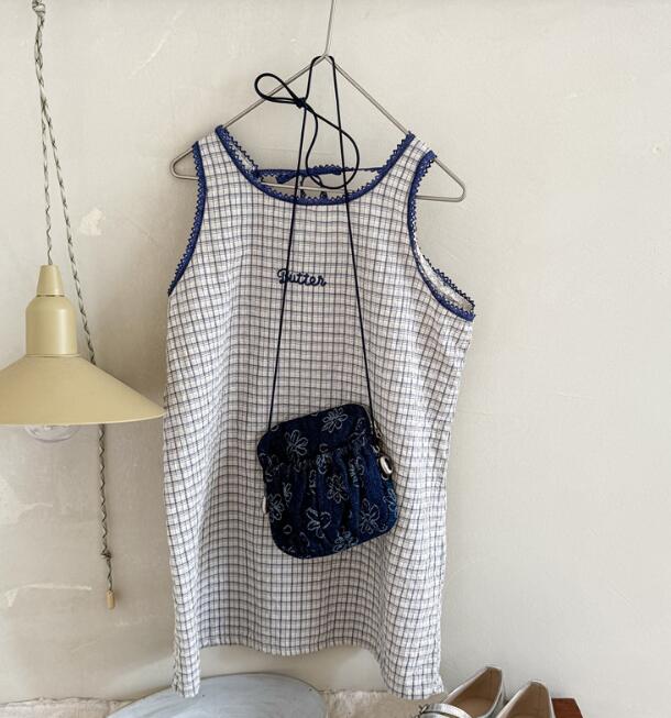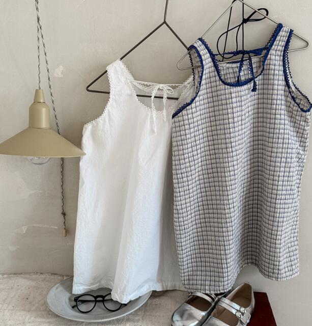 可愛いチェック柄が魅力的なキッズ用肩紐ワンピースです。