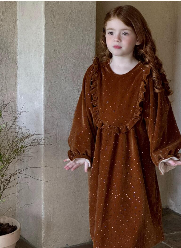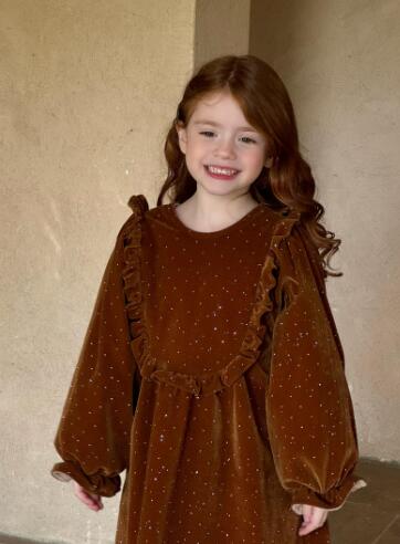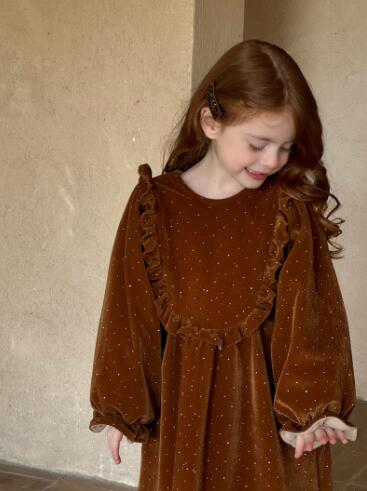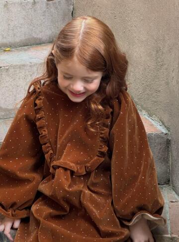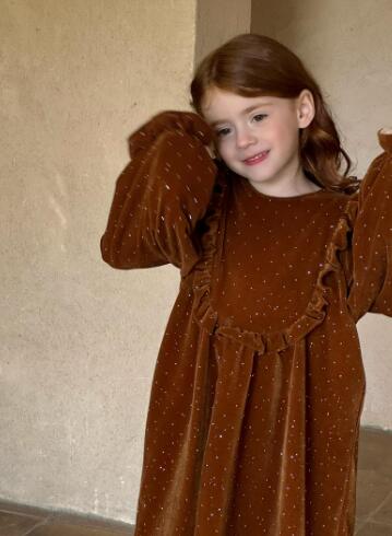 可愛い水玉模様が印象的なキッズ向けロングワンピースです。