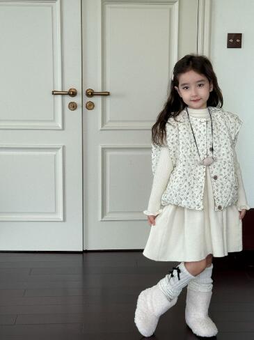 キッズ向けの上品な長袖ロングワンピースです。
