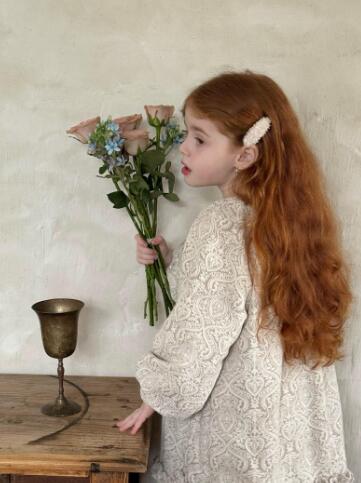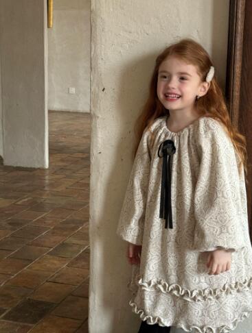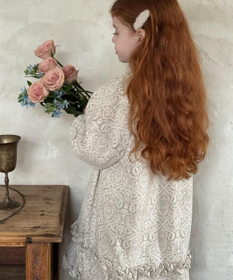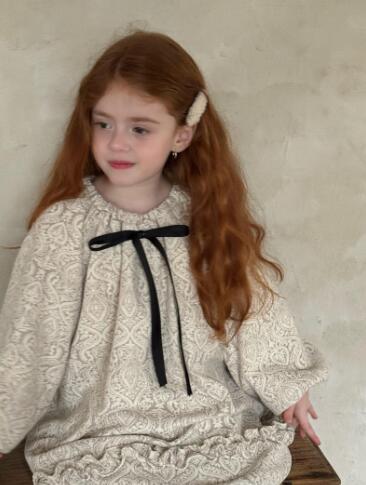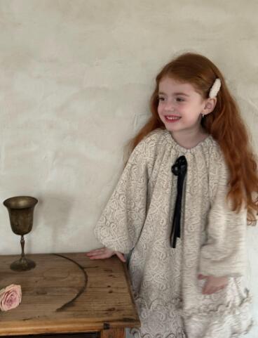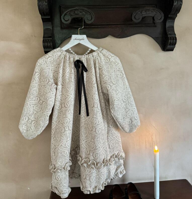 上品なペイズリー柄が美しいキッズ用ロングワンピースです。