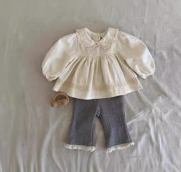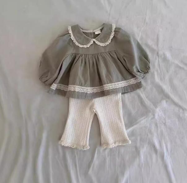 可愛い丸襟とレース装飾が特徴的なキッズ用ベビー服セットです。