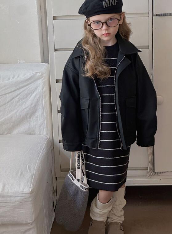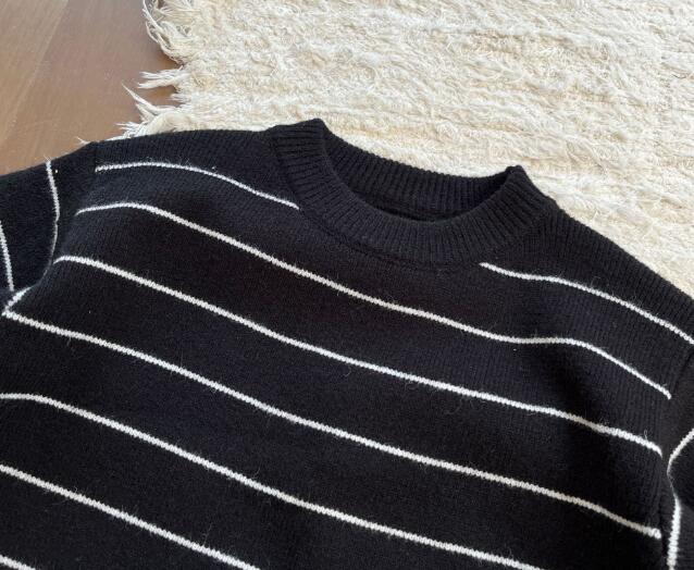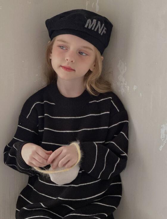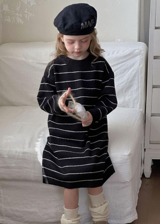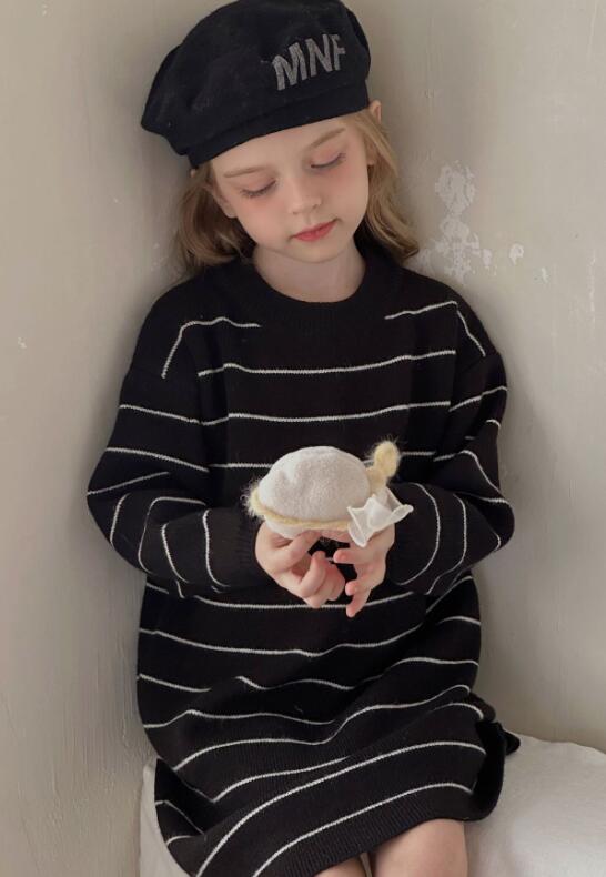 おしゃれなボーダー柄が魅力的なキッズ用ニットワンピースです。