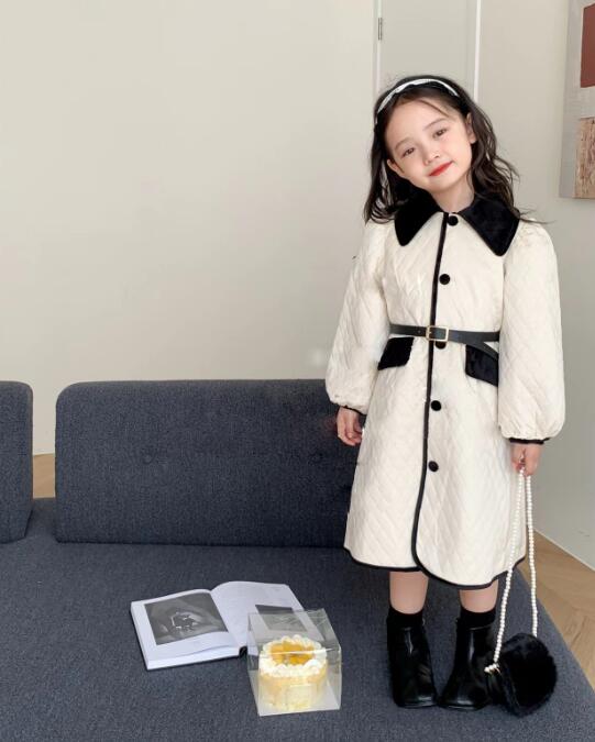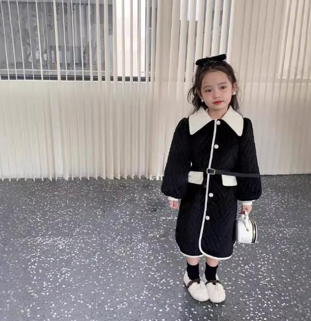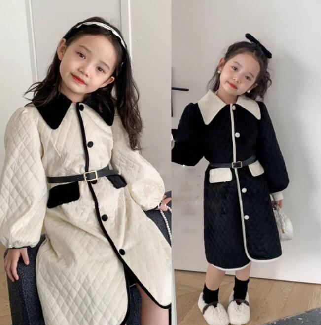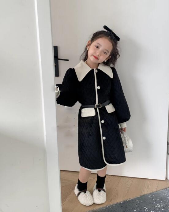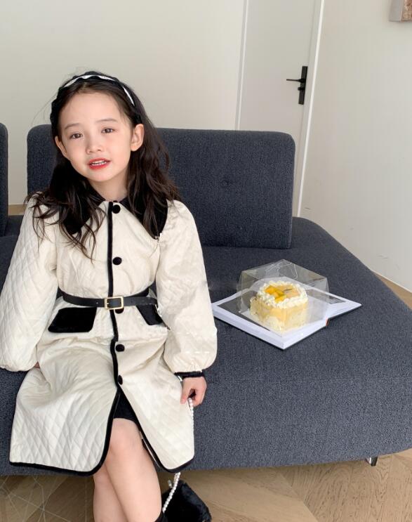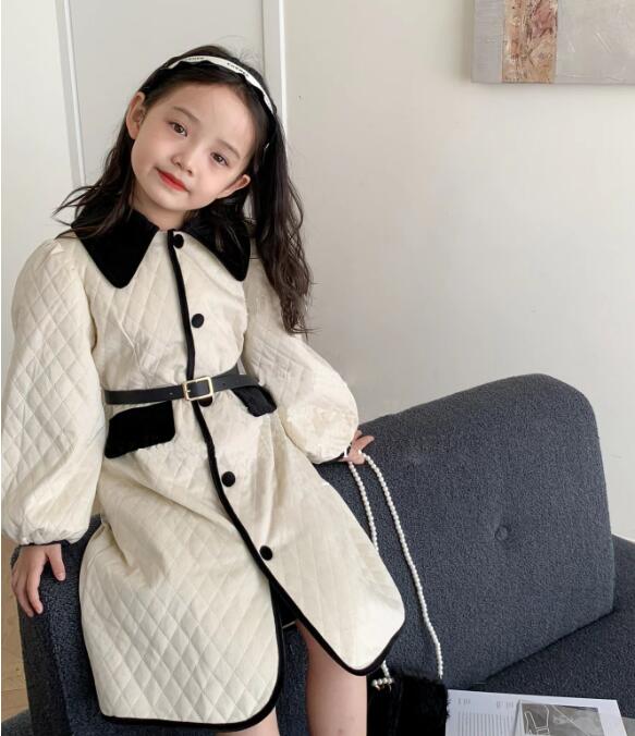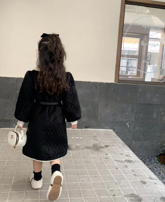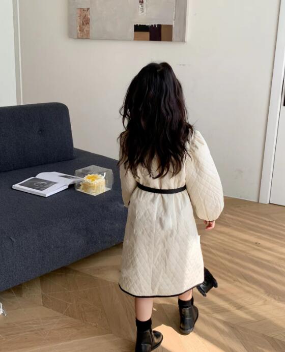 上品な丸襟とキルティング生地が可愛いキッズ用ロングワンピースです。