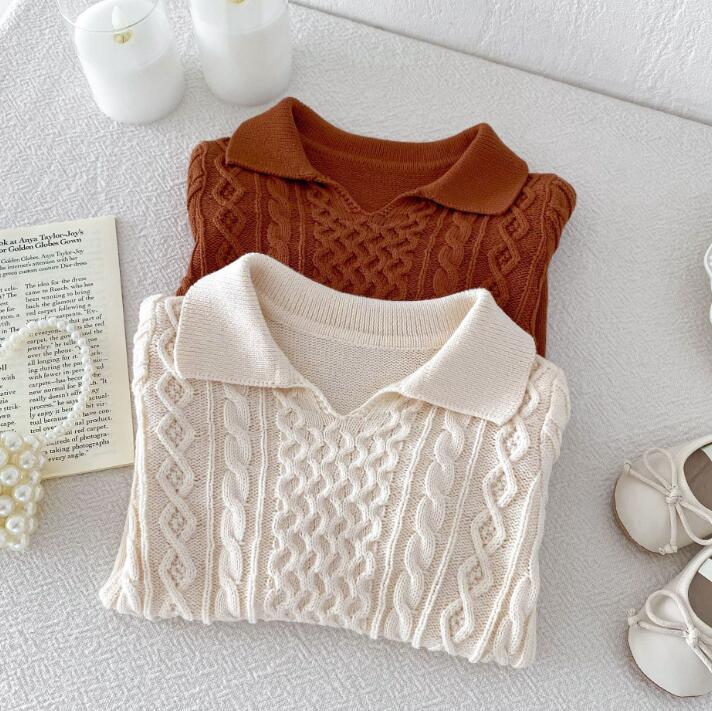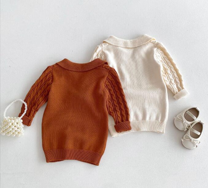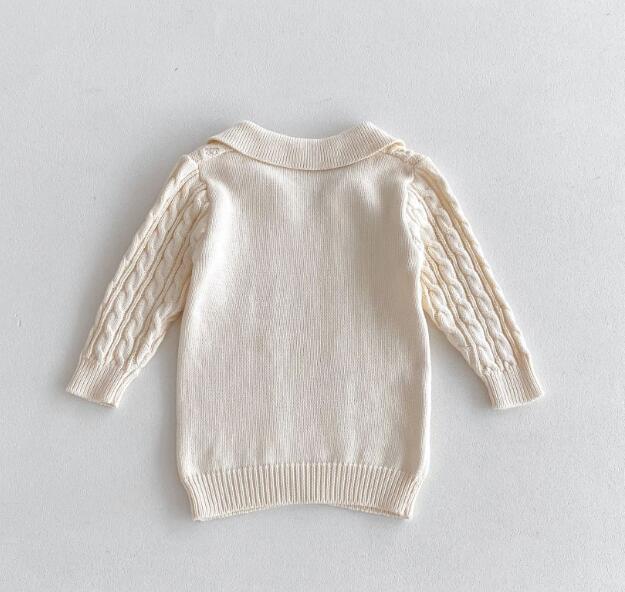 可愛らしいケーブル編み模様が特徴的なキッズ向けニット製ロングワンピースです。
