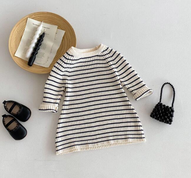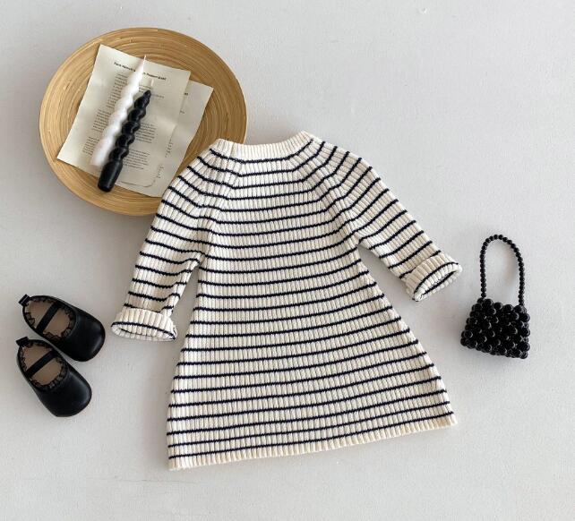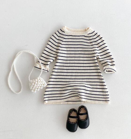 可愛らしいボーダー柄が印象的なキッズ向けニットワンピースです。