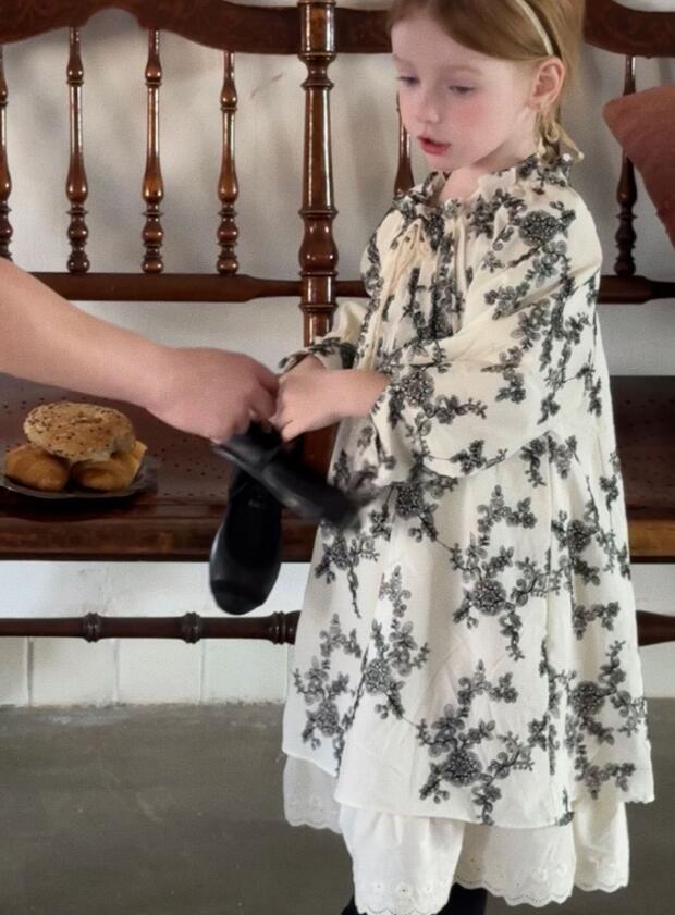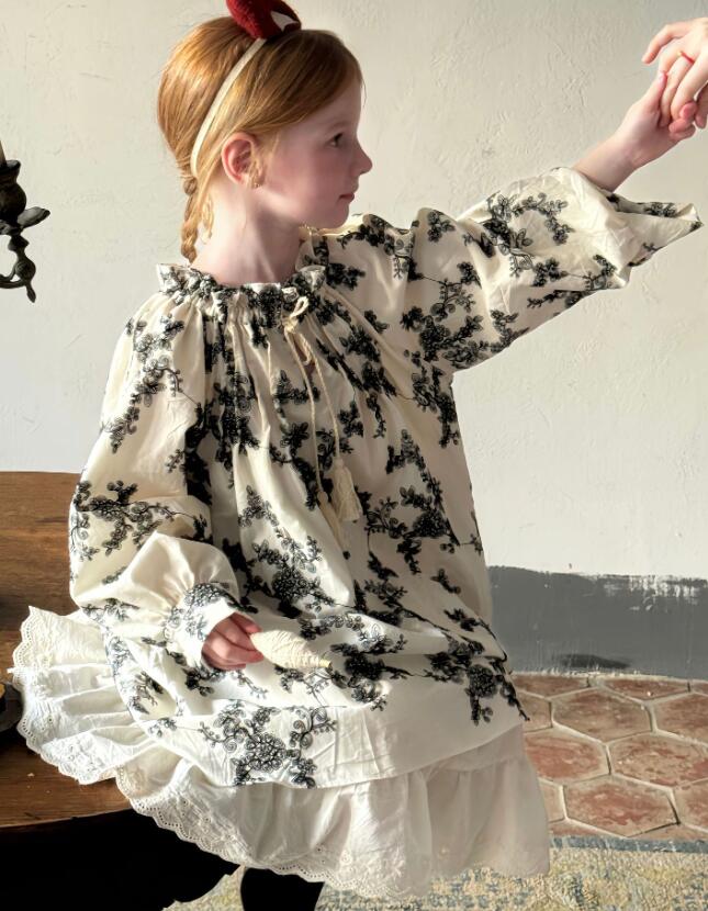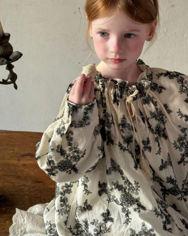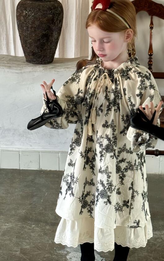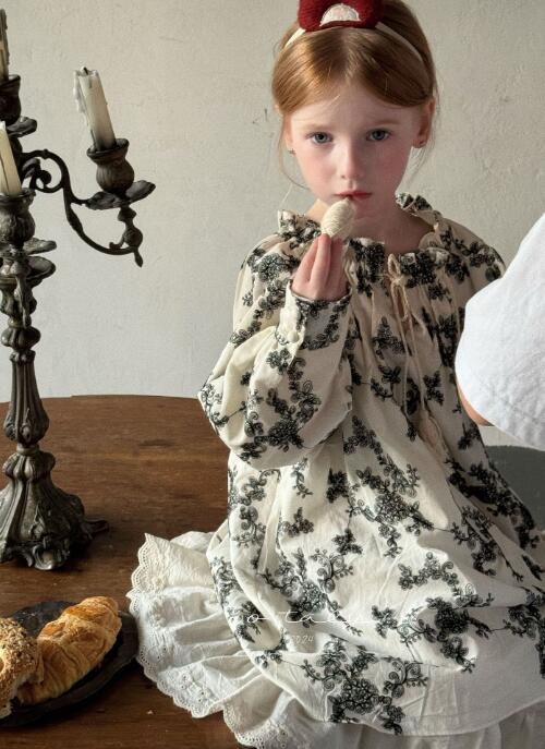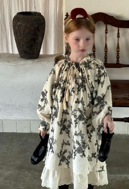 上品な花柄が美しいキッズ用ロングワンピースです。