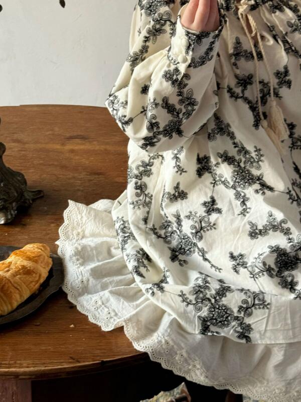 袖口と裾にレースがあしらわれ、特別な日にぴったりの一着。