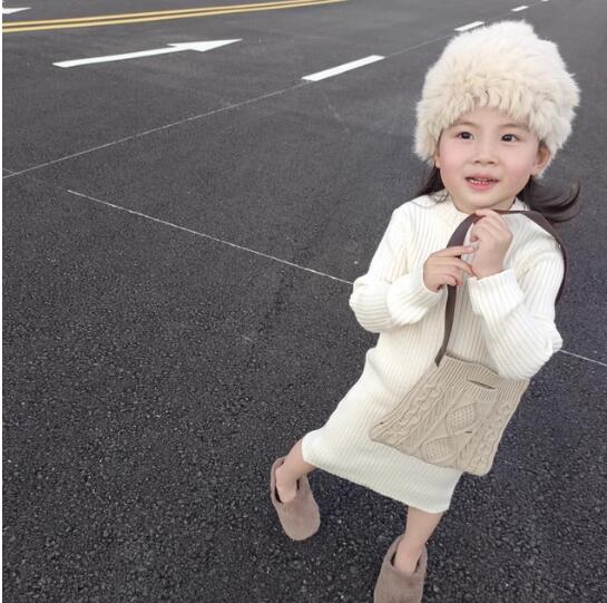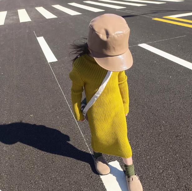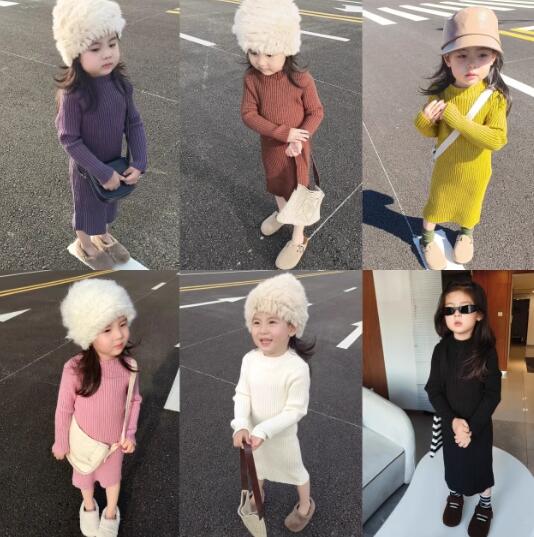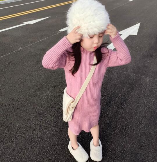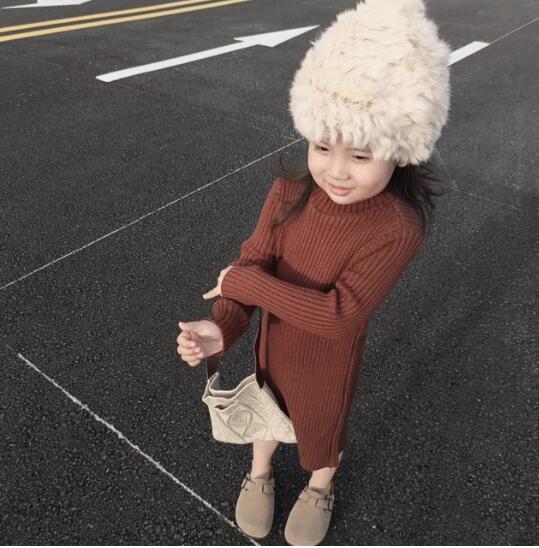 秋冬シーズンにぴったりのキッズ向けリブ編みニットワンピースです。