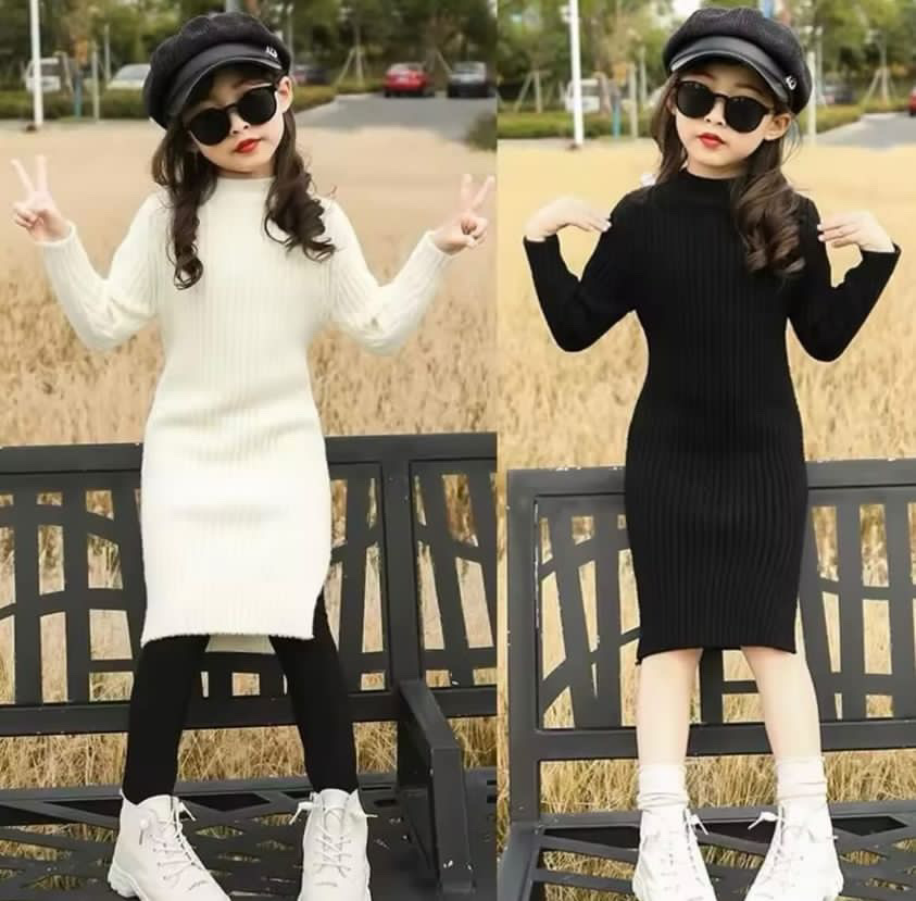 秋冬にぴったりのキッズ向けタートルネックニットワンピースです。