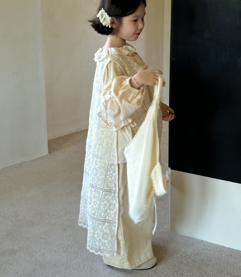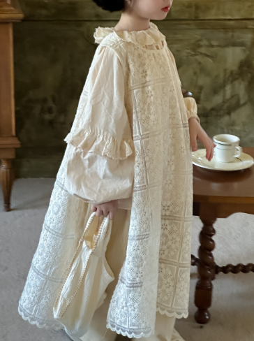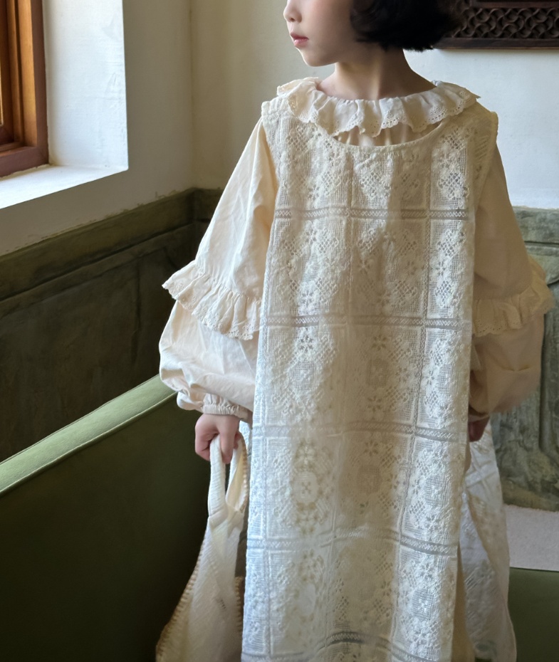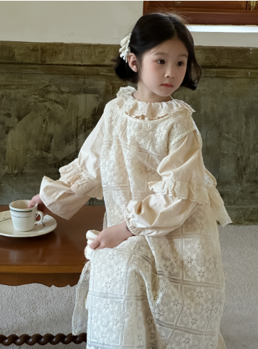 上品な刺繍レースが美しいキッズ用ロングワンピースです。
