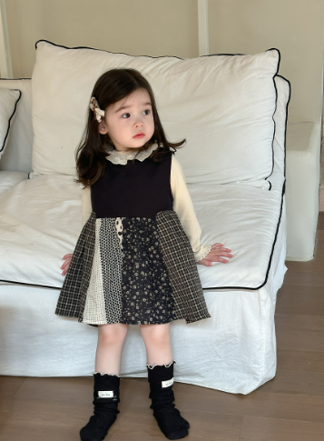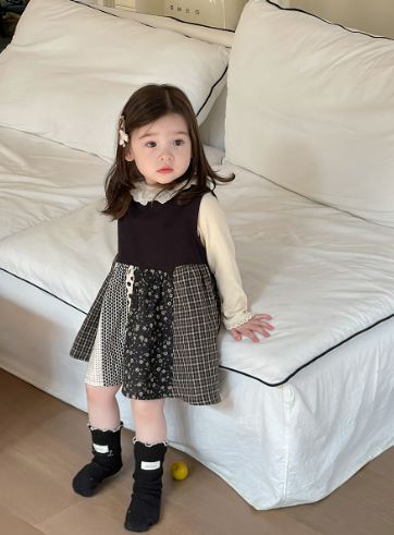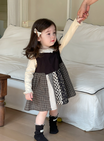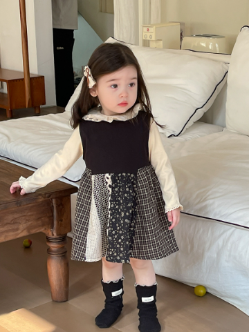 キッズ向けの可愛いチェック柄ロングワンピースです。