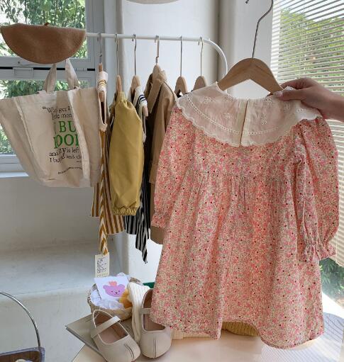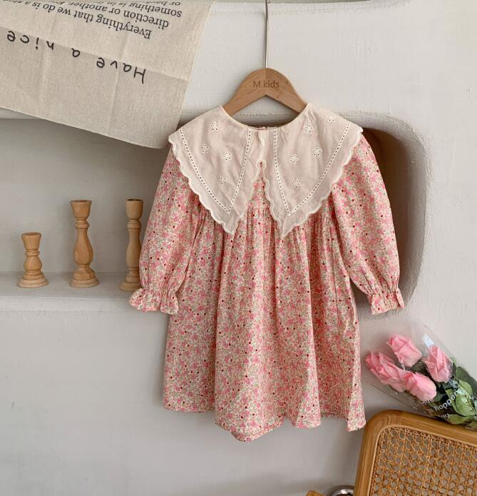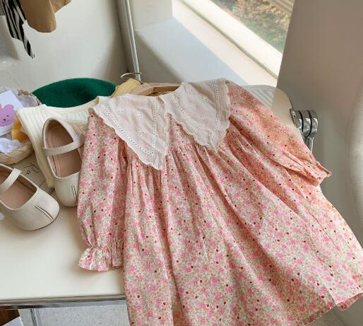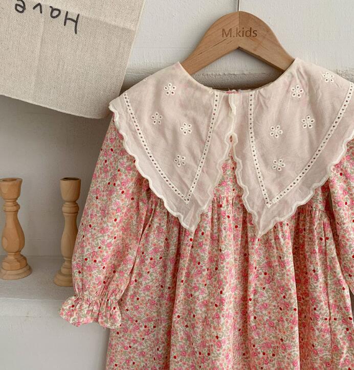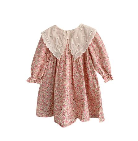 可愛らしい花柄とレース刺繍襟が魅力的なキッズ用ロングワンピースです。