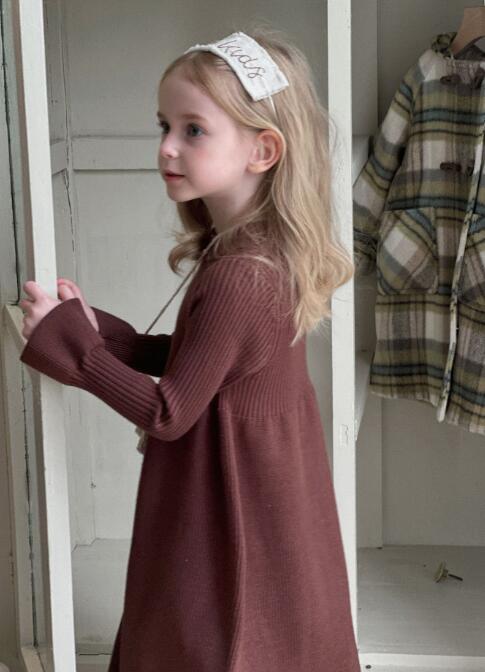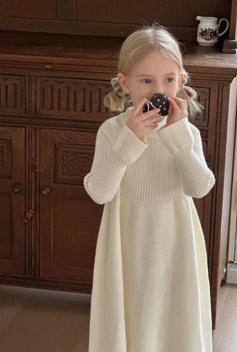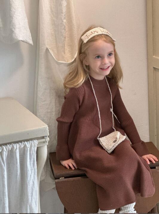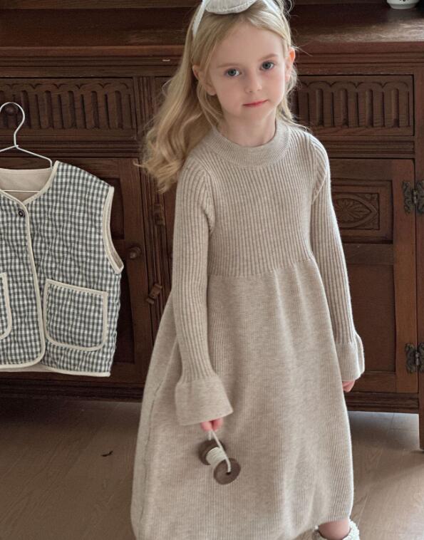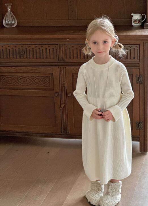 やわらかなニット素材で作られたキッズ向けロングワンピースです。