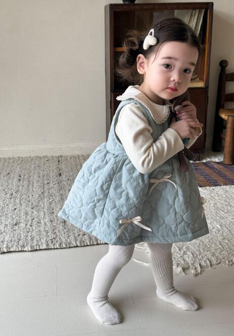 可愛らしいキッズ用の重ね着風ワンピースです。