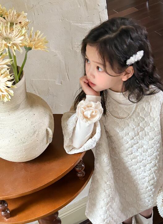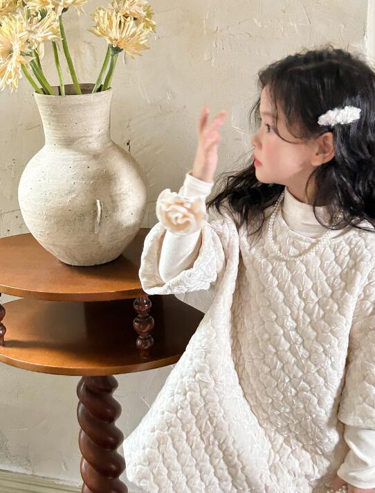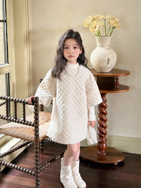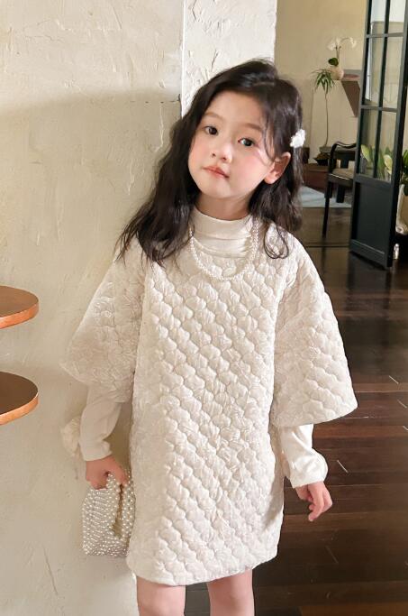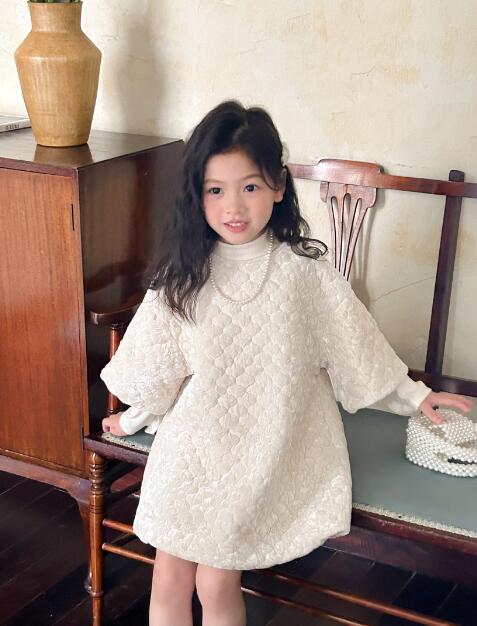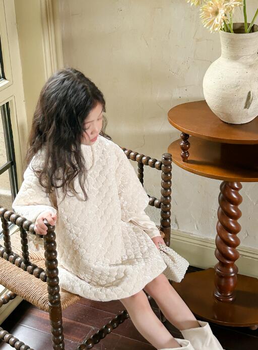 上品な編み込み模様が美しいキッズ用ロングワンピースです。