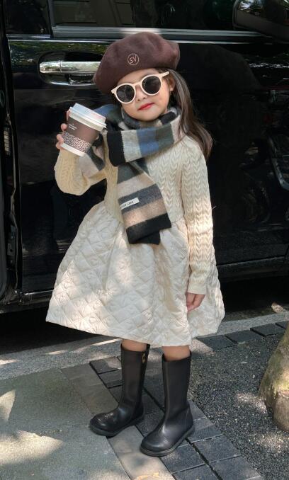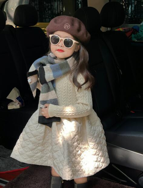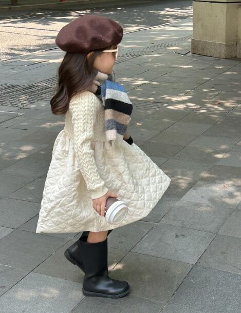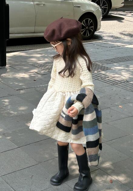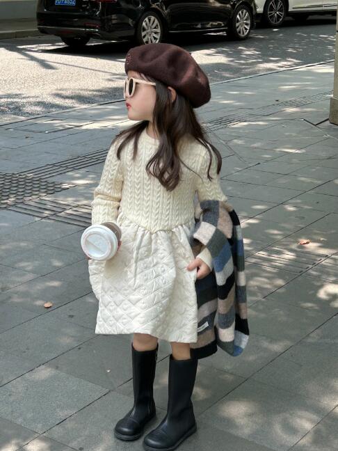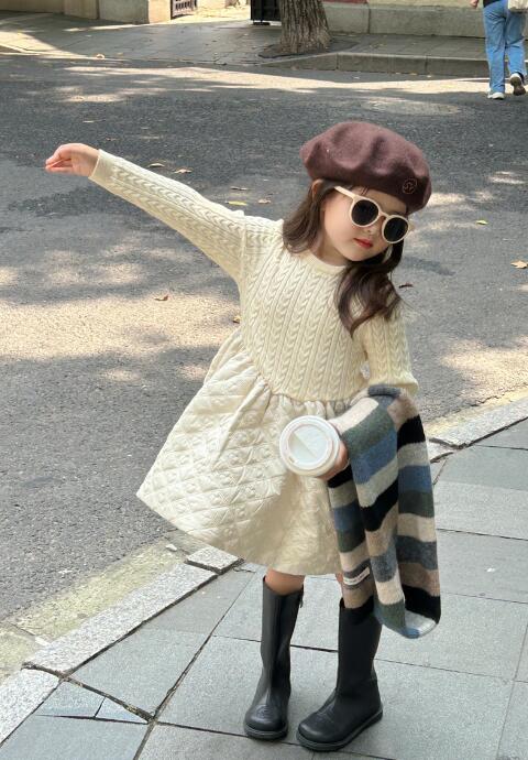 可愛いキッズ向けの上品なニット編みロングワンピースです。