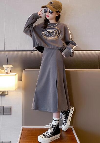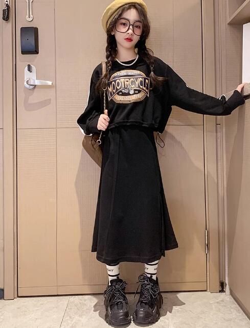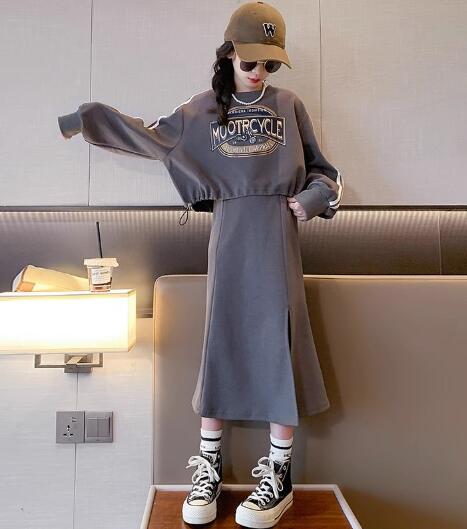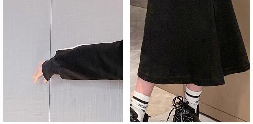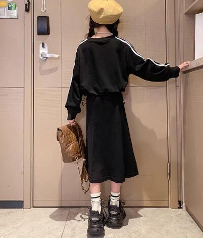 柔らかい綿混合素材の長袖トップスと、トレンドのロングワンピースがセットになっています。