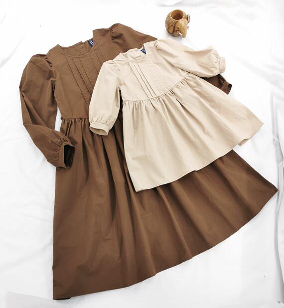 親子でお揃いコーディネートが楽しめる長袖タイプで、ブラウンとベージュの2色展開。