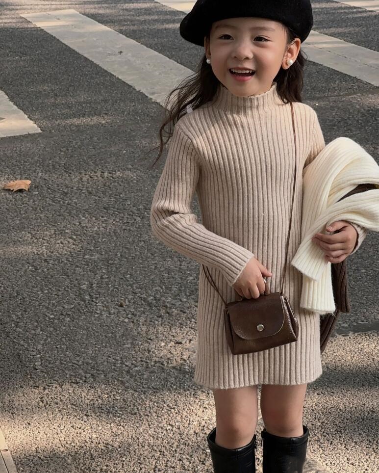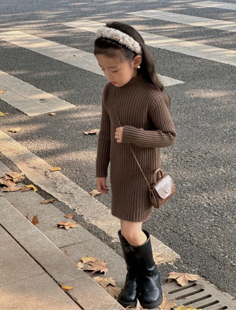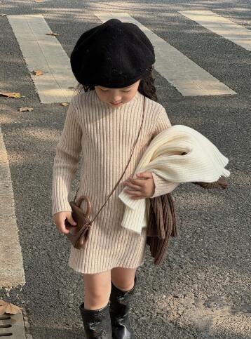 2024年新作のキッズ向けリブニット素材のロングワンピースです。