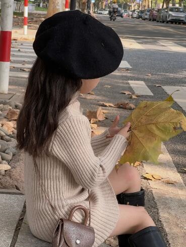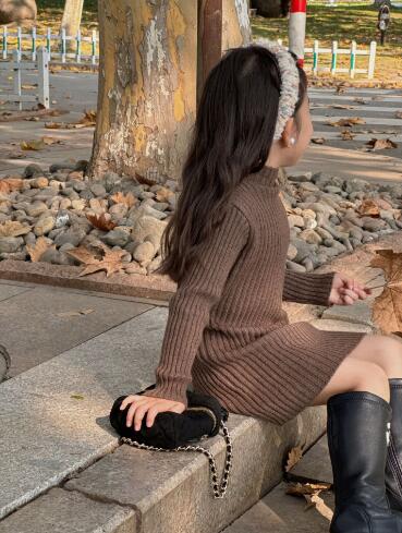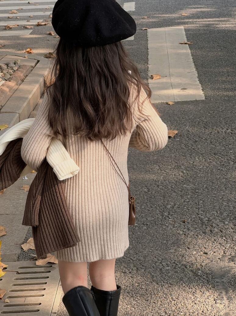 縦リブ編みが上品で、秋冬にぴったりの暖かい長袖デザイン。