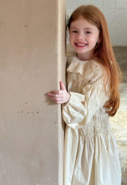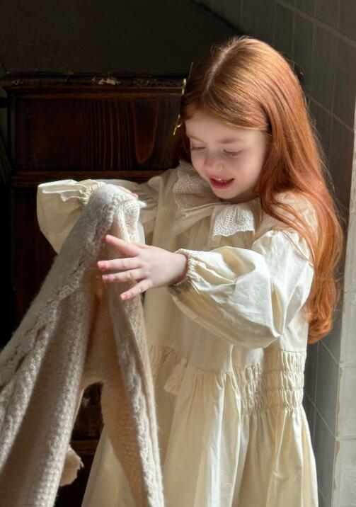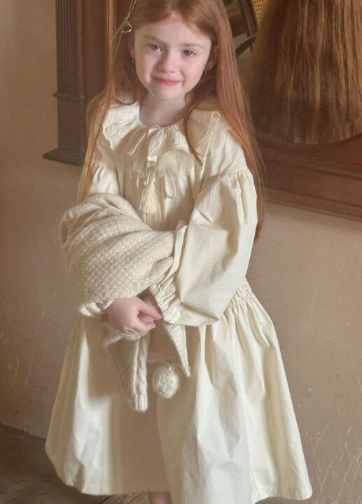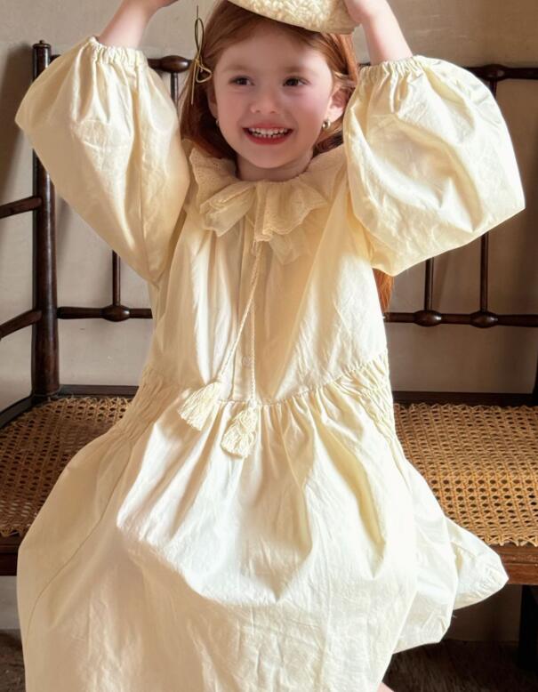上品なクリーム色のキッズ用ロングワンピースです。