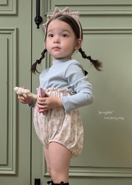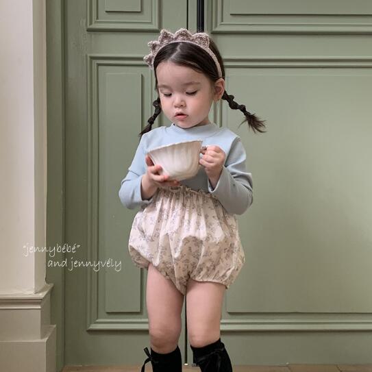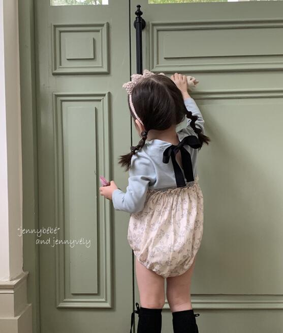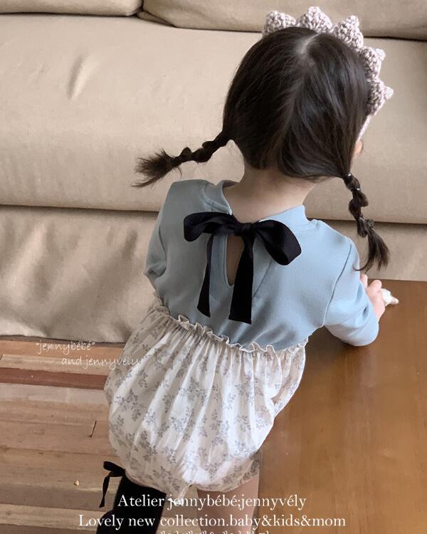 可愛い花柄プリントのロンパースは、背中のリボンがアクセントの上品なデザイン。