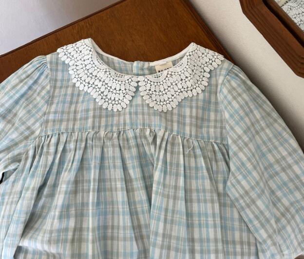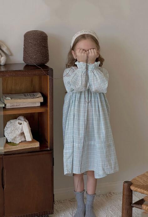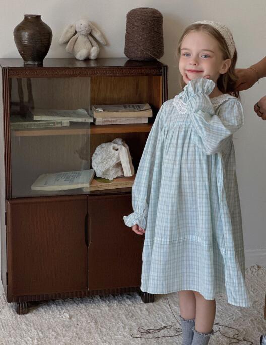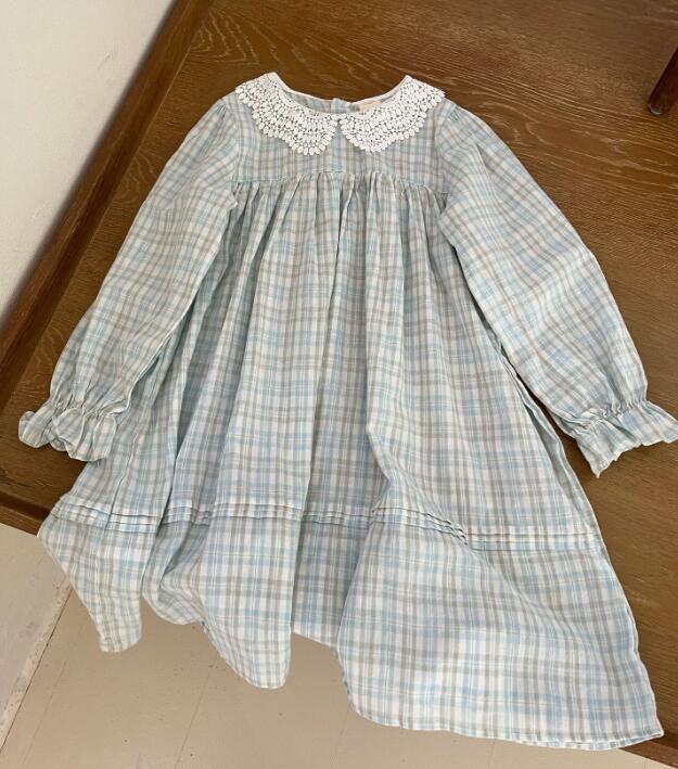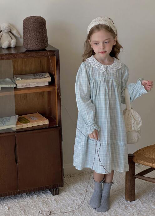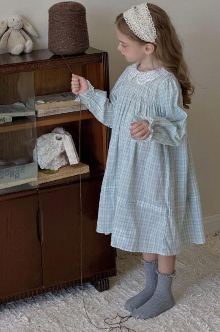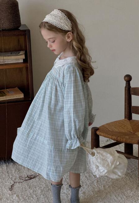 上品なチェック柄とレース襟が可愛らしいキッズ用ロングワンピースです。