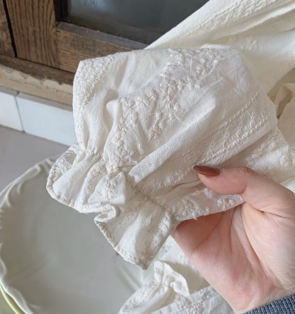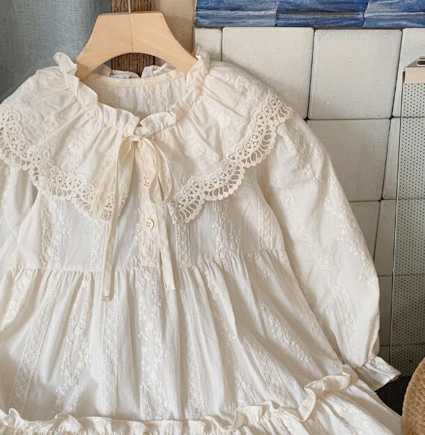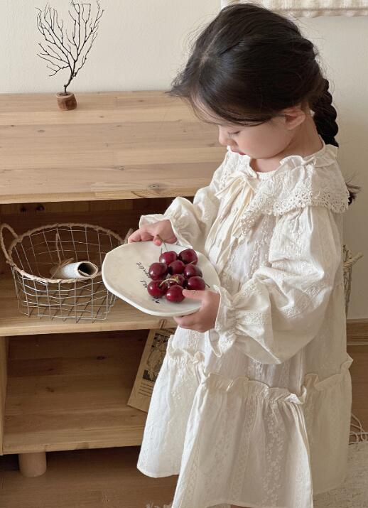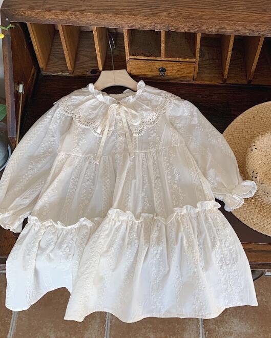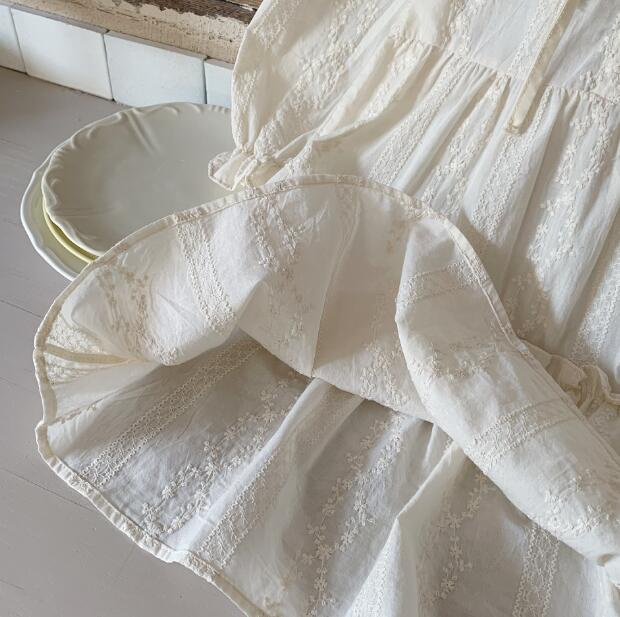 胸元と袖に繊細なレース装飾を施し、ティアード仕様の裾が優雅に揺れる特別な一着です。