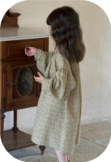 優しいベージュ色と小花柄が女の子らしさを演出します。