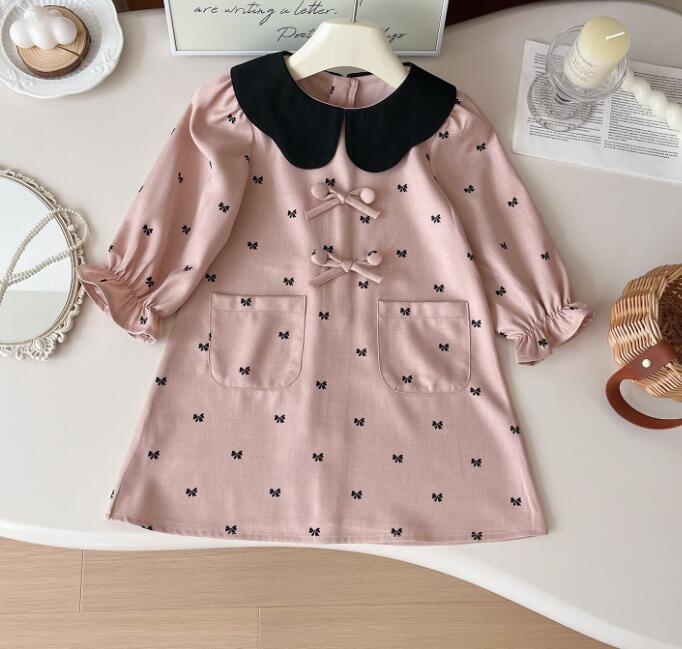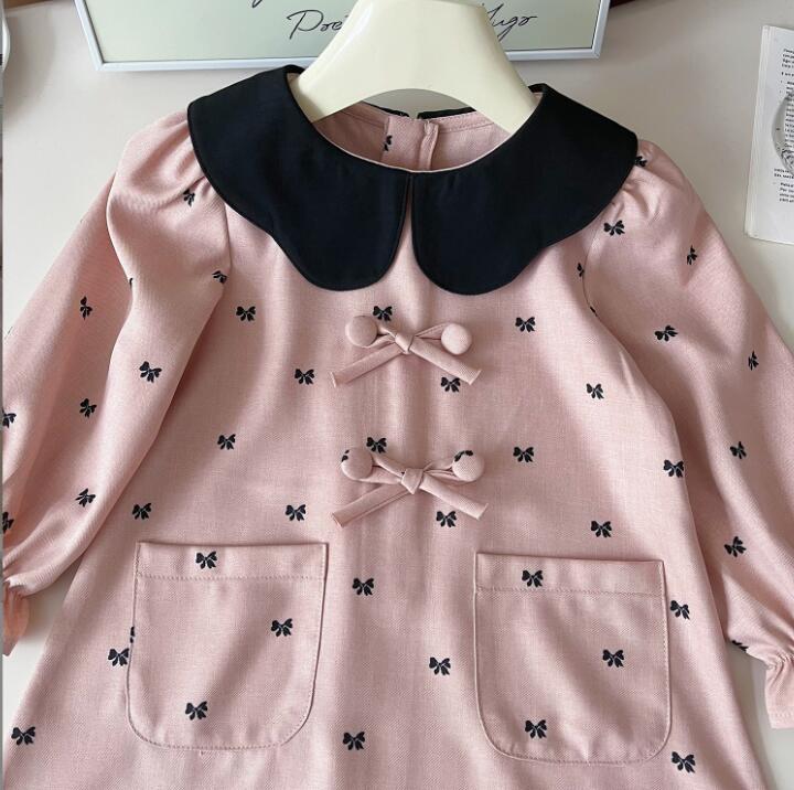 上品な襟付きデザインが魅力的なキッズ向けロングワンピースです。