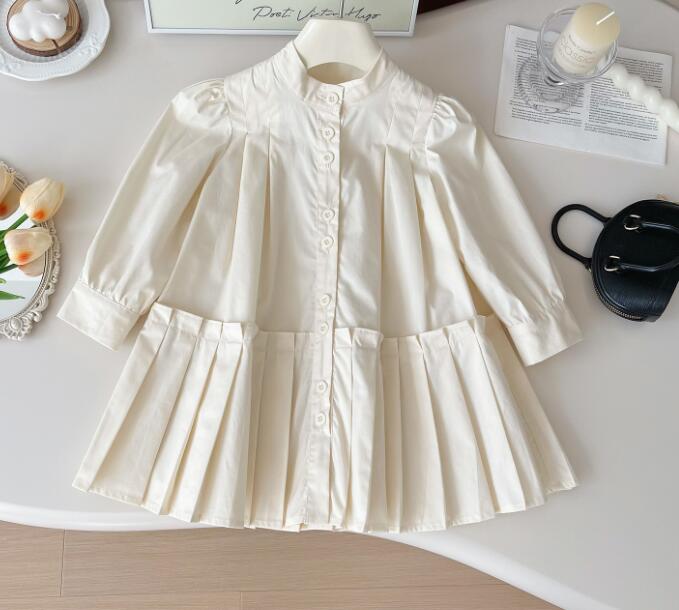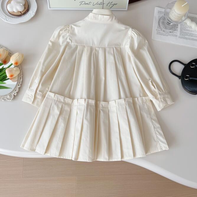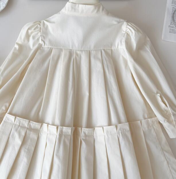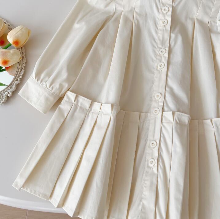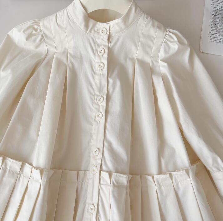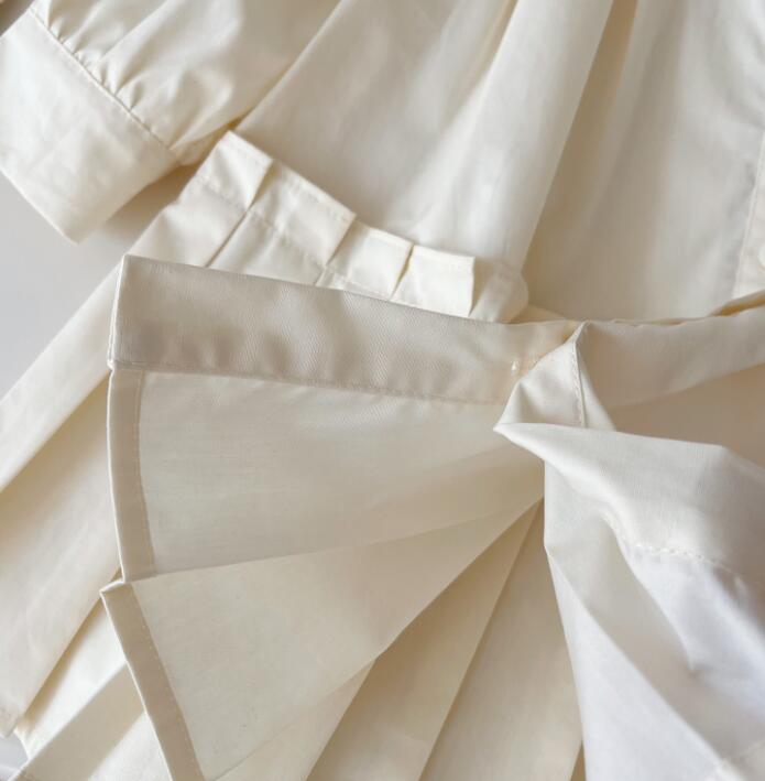 上品な白色生地にパフスリーブとプリーツスカートが可愛らしい一着。