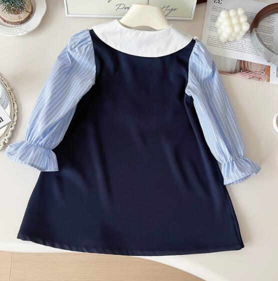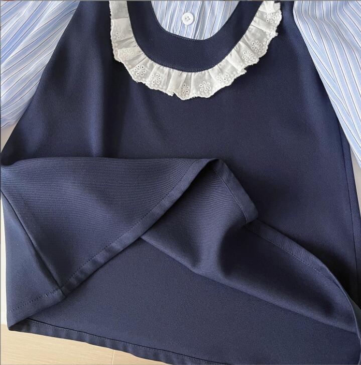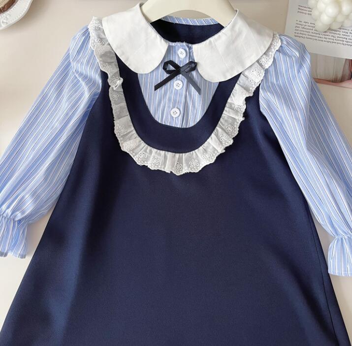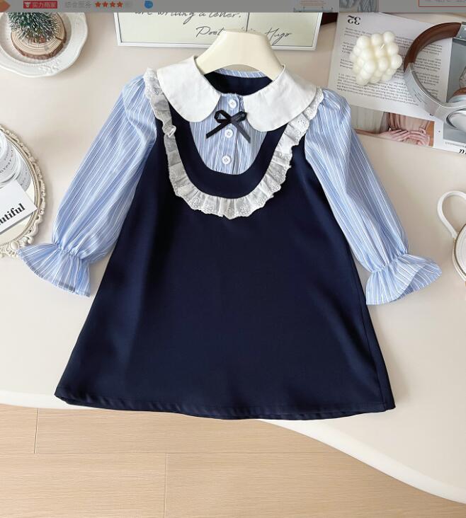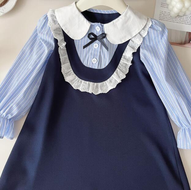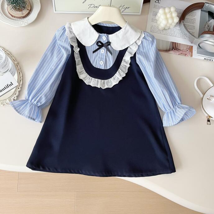 上品な丸襟とレース装飾が可愛らしいキッズ向けロングワンピースです。