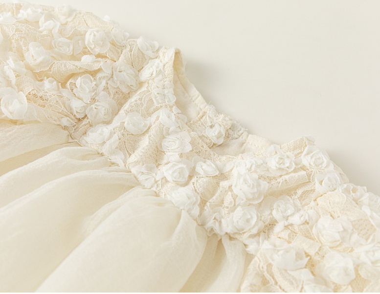 上品な花柄刺繍が美しいキッズ向けロングワンピースです。