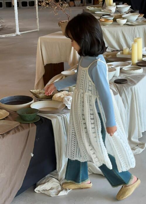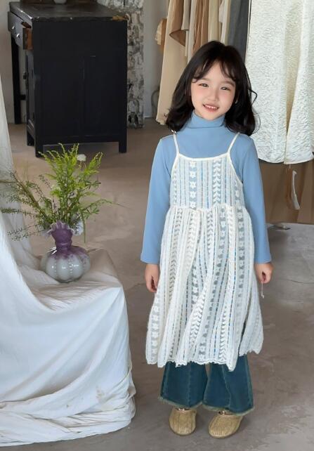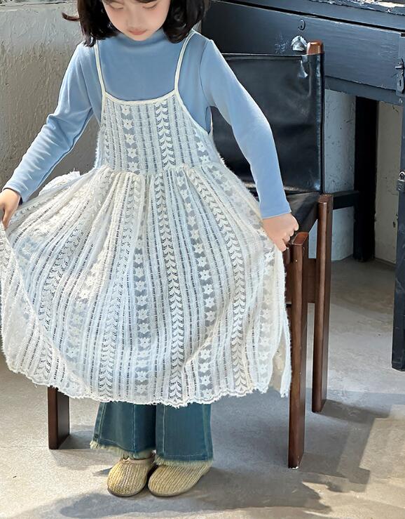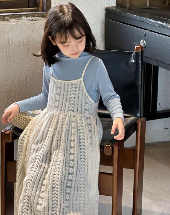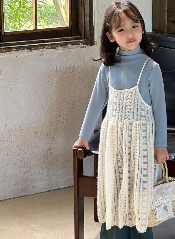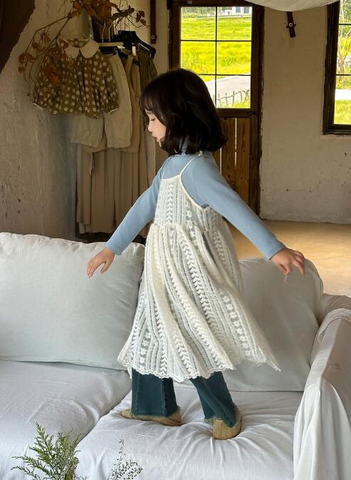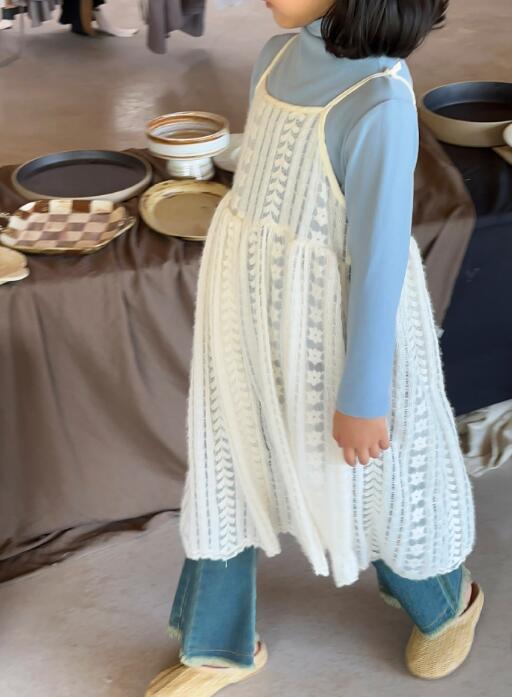繊細なレース編みが美しいキッズ用ロングワンピースです。