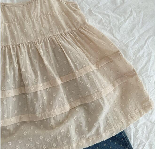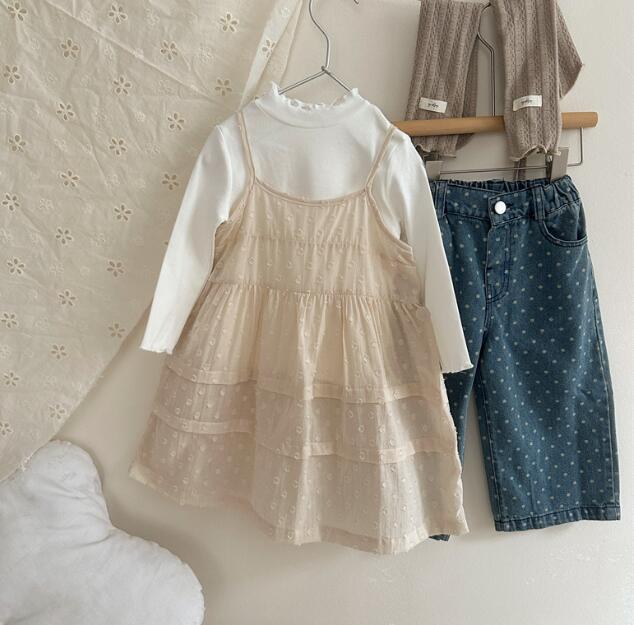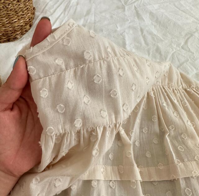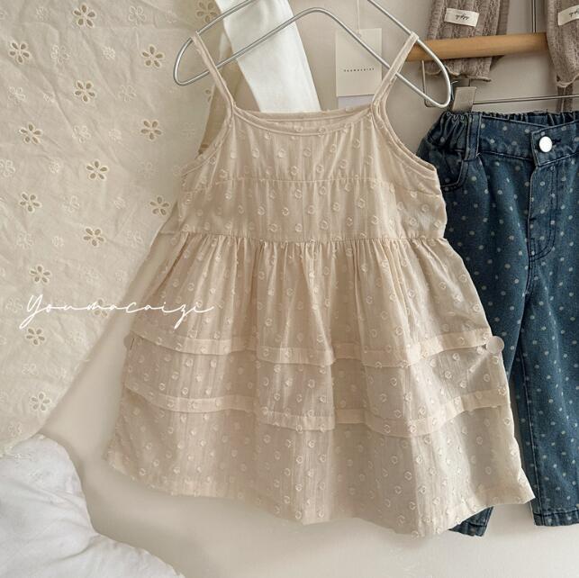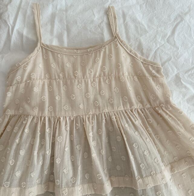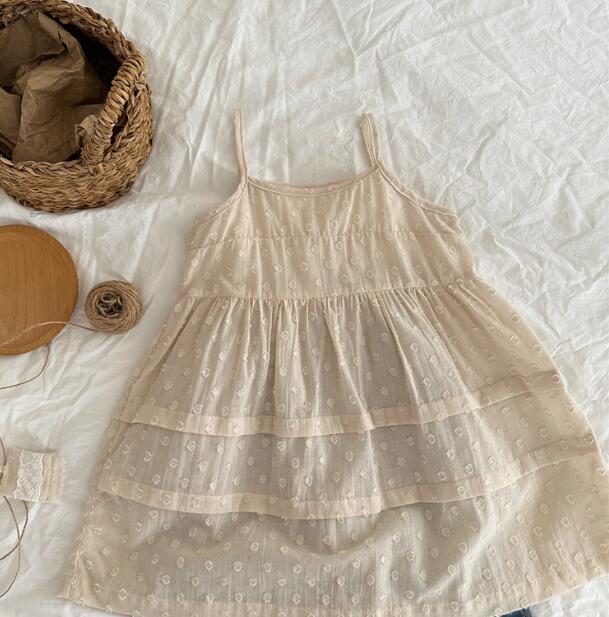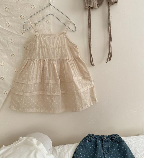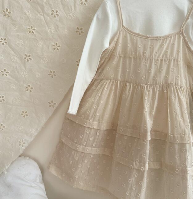 肩紐仕様で着脱しやすく、ティアード状の裾がふんわりと広がる上品なデザイン。