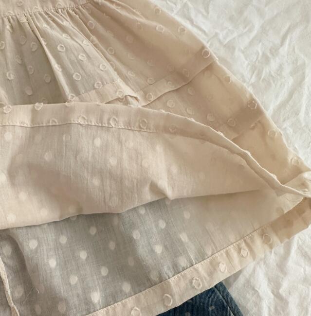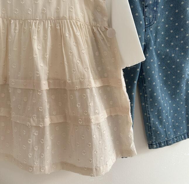 可愛い水玉柄が印象的なキッズ用ロングワンピース。