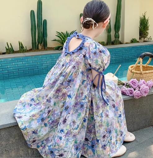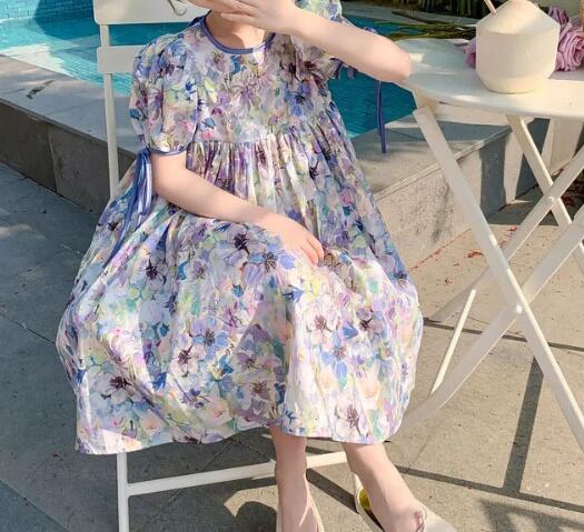 可愛い花柄デザインのキッズ用ロングワンピースです。