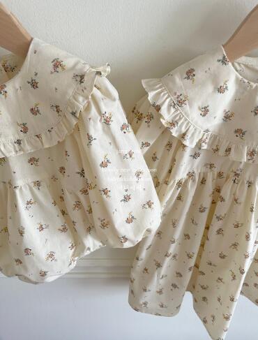 可愛い小花柄が魅力的なキッズ用つなぎ服の二点セットです。