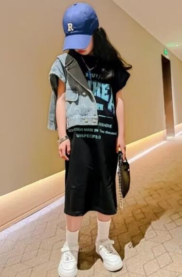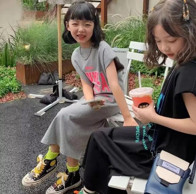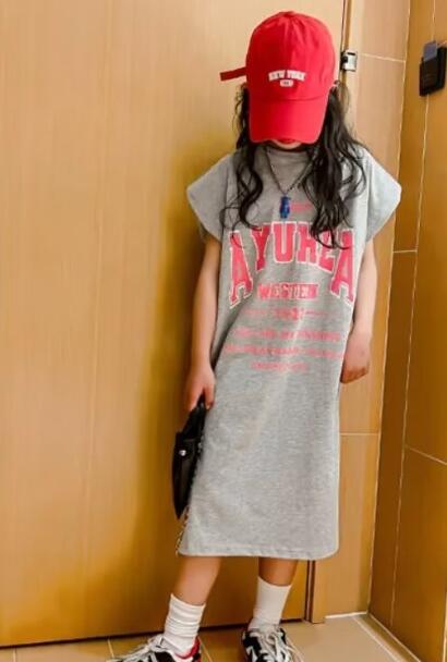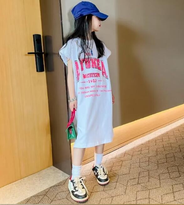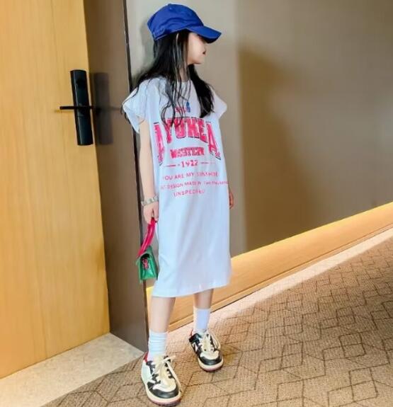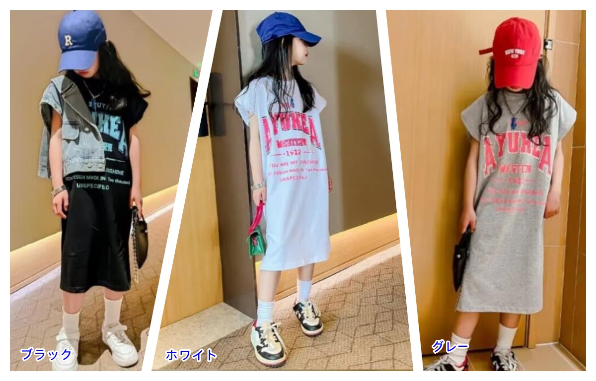 夏にぴったりなキッズ用半袖ロングワンピースです。