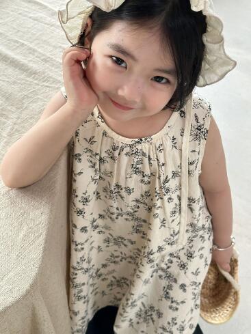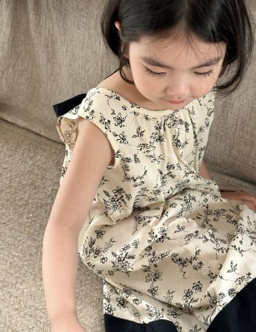 上品なベージュ地に繊細な花柄プリントで、お出かけにもデイリーにも活躍します。